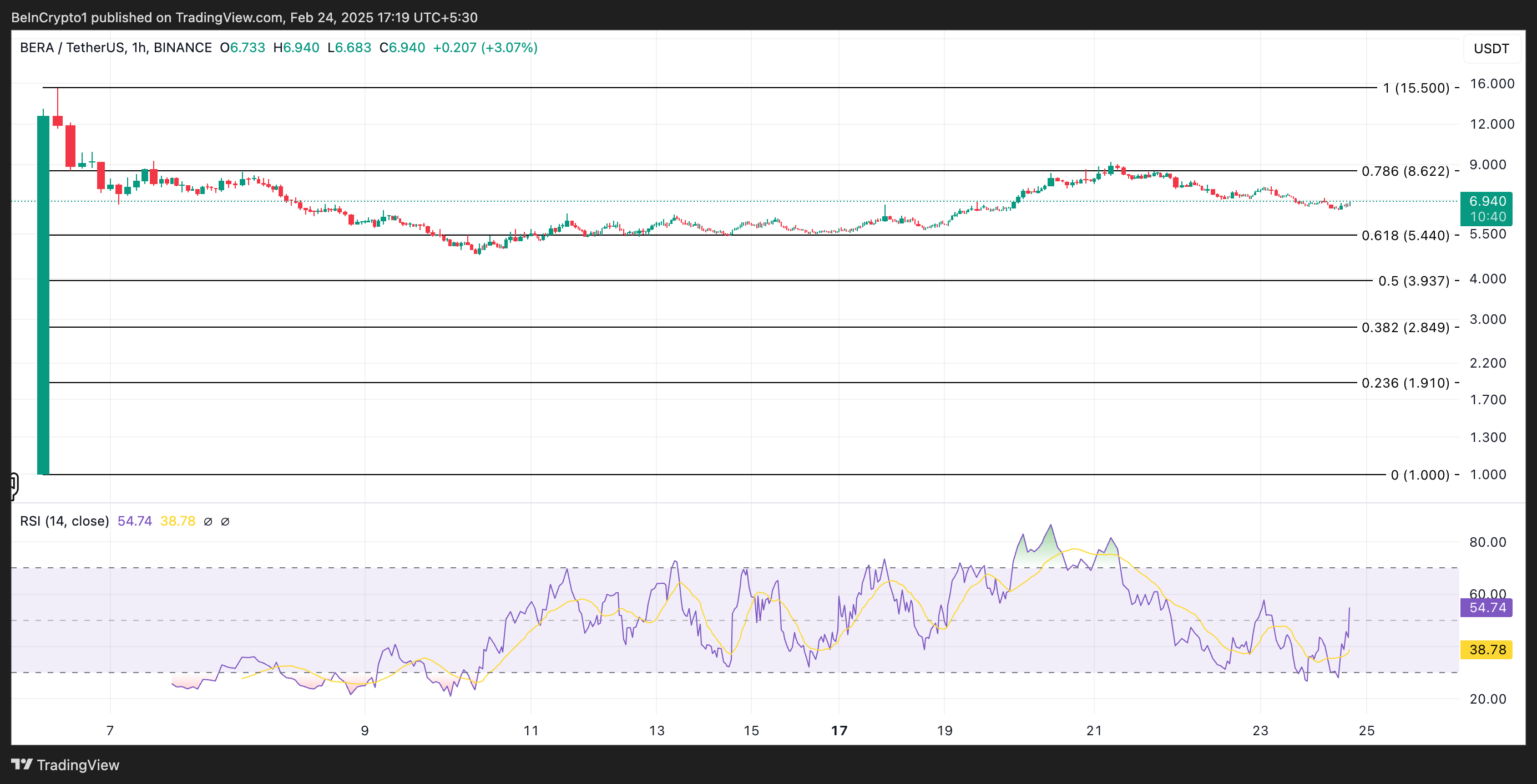 Tuntikaavion tarkastelu paljastaa kuitenkin BERA:n kysynnän tasaisen nousun, mikä viittaa mahdolliseen palautumiseen lähitulevaisuudessa. Esimerkiksi sen suhteellinen voimaindeksi (RSI) on noussut keskiviivan yläpuolelle ja on noususuunnassa kirjoitushetkellä.