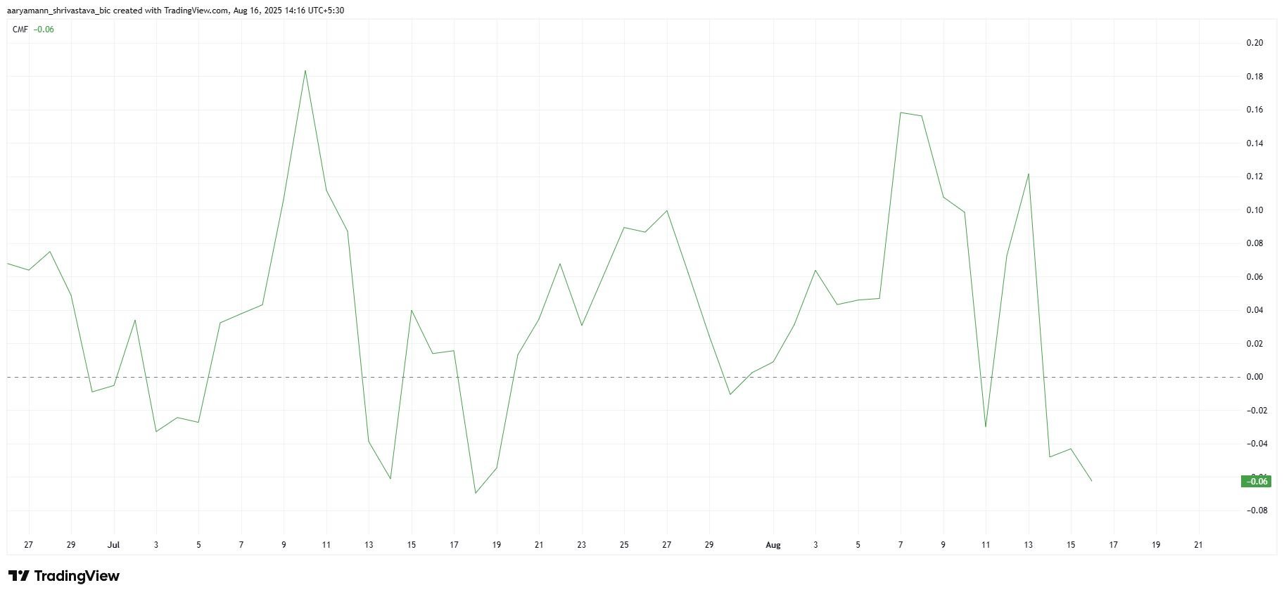 Laajemmat markkinaindikaattorit TRUMPille, kuten Chaikin Money Flow (CMF), osoittavat huolen merkkejä. CMF, keskeinen ostojen ja myyntien paineen indikaattori, on ollut laskevassa suunnassa, mikä viittaa sijoittajien tunnelman heikkenemiseen.