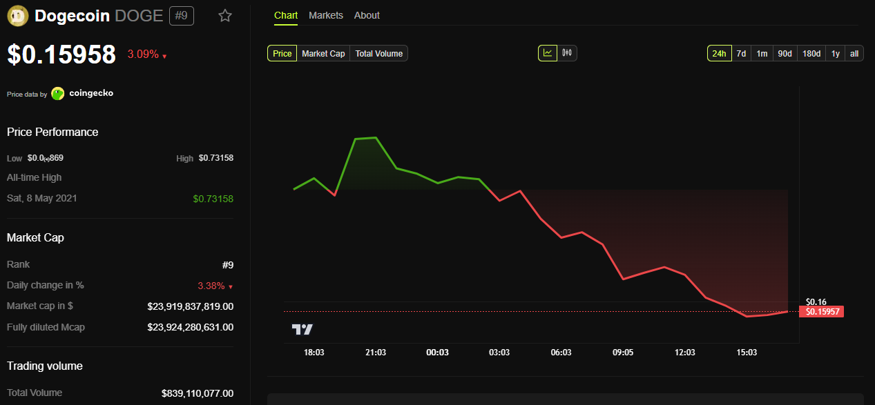 Tämän päivän konfliktin meemikolikkovaikutus on jo hyvin näkyvä. Dogecoin, joka on vahvasti yhteydessä lähes kaikkeen, mitä Elon Musk tekee, laski lähes 4% Trumpin karkotusuhkausten jälkeen.