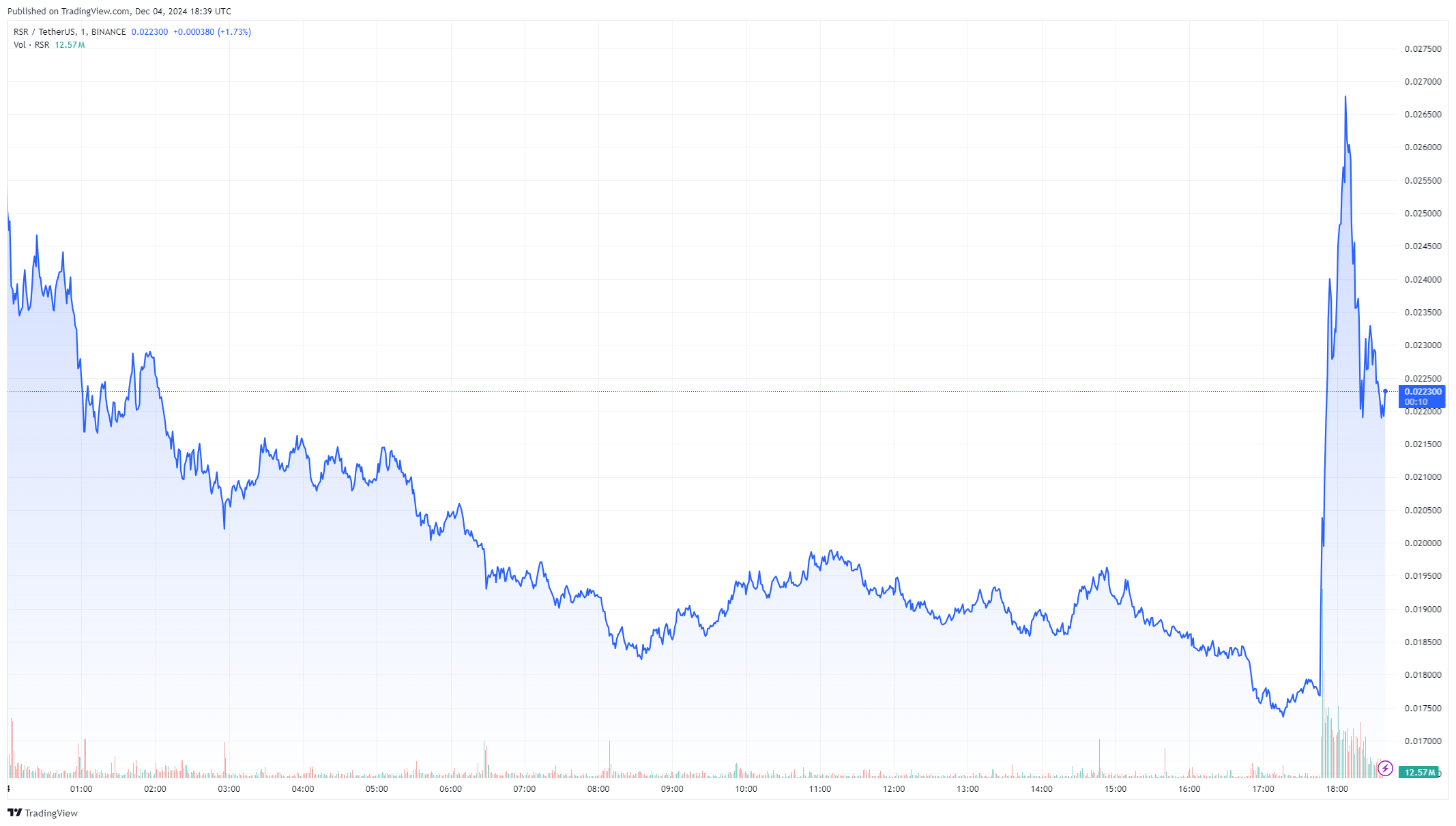 Kryptovaluuttamarkkinat ovat reagoineet voimakkaasti tähän ilmoitukseen. Reserve Rights (RSR) token koki vielä dramaattisemman reaktion, kun sen arvo nousi lähes 30%.