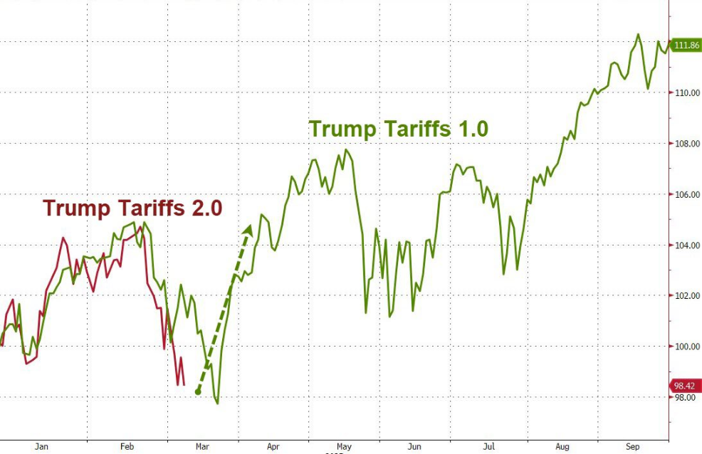 Rahoitusmarkkinoiden kommentaari, The Kobeissi Letter, osallistui tähän keskusteluun korostaen yhtäläisyyksiä Trumpin tullisota 1.0:n ja 2.0:n välillä.