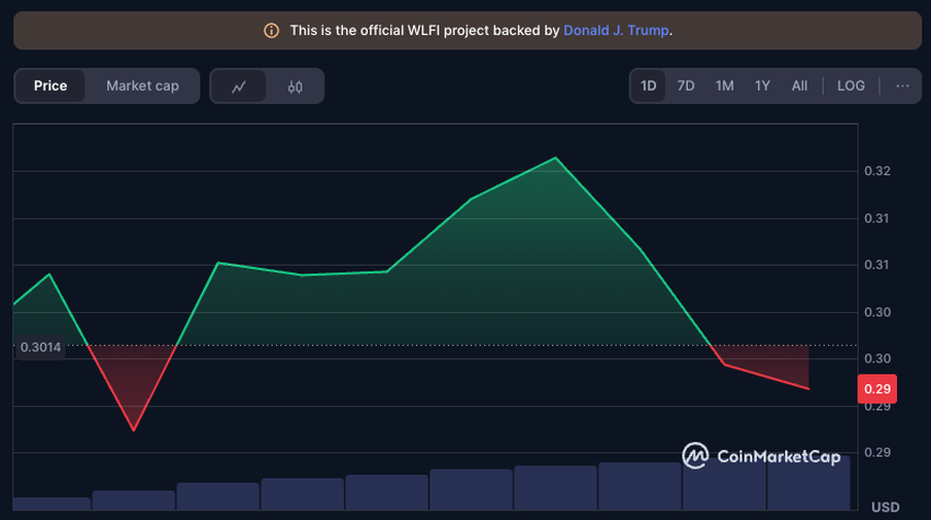 Kaupankäynnin ensimmäisen tunnin aikana WLFI:n hinta liikkuu 0,29 ja 0,31 dollarin välillä, laskien 1~2 % edellisestä päivästä futuurimarkkinoilla. Tämä on epätavallinen kehitys, sillä useimmat kryptovaluutat kokevat yleensä hinnannousun listausilmoituksen jälkeen.