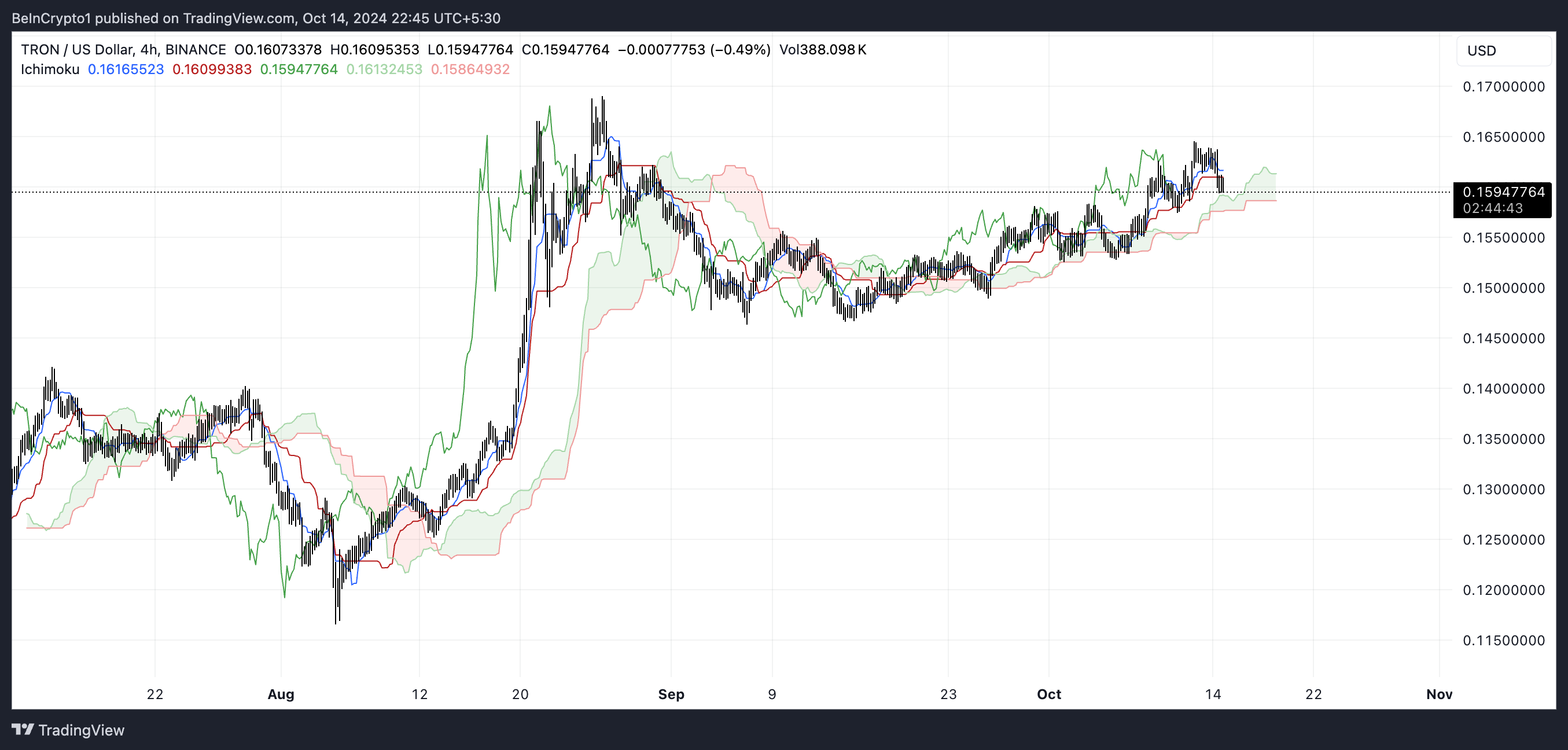 TRX Ichimoku Cloud osoittaa härkämäistä momenttia