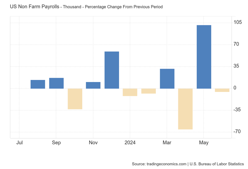 Kyseisen kuukauden aikana työttömyys nousi hieman 4,1 prosenttiin, mikä on 2 prosentin nousu ennustetusta 4,0 prosentista. Kesäkuun työttömyysaste pysyi 4 prosentissa, mikä viittasi siihen, että työttömien osuus työvoimasta pysyi vakaana.