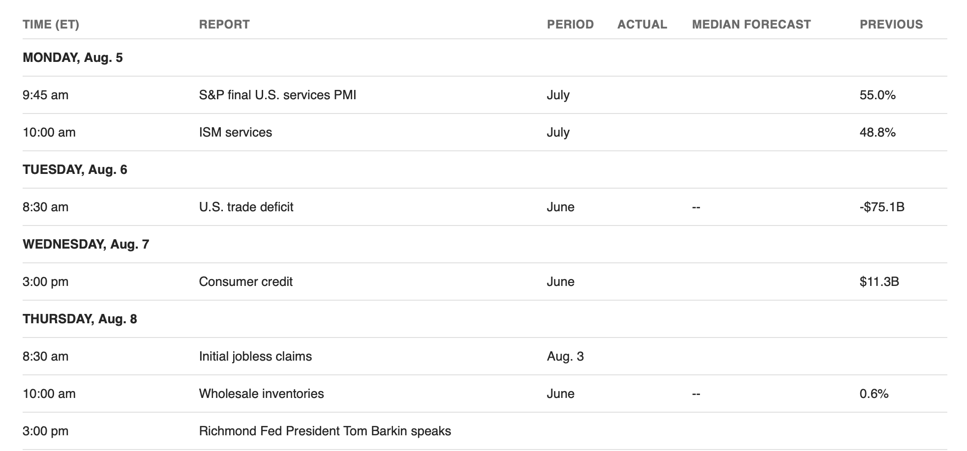 Kauppiaat seuraavat S&P Global Services PMI -indeksiä maanantaisin, jonka kokoaa S&P Global. Sektoreihin kuuluvat kuluttaja (vähittäiskauppaa lukuun ottamatta), kuljetus ja tiedotus, viestintä, rahoitus, vakuutus, kiinteistöt ja liiketoimintapalvelut.