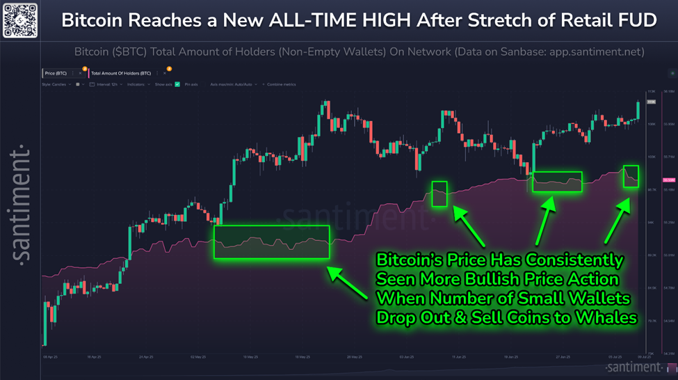 Yksityis-sijoittajat seuraavat sivusta tai poistuvat kokonaan, vaikka Bitcoin (BTC) saavutti uuden kaikkien aikojen ennätyksen ja pysyy yli 111 000 dollarin seitsemän viikon konsolidoinnin jälkeen.