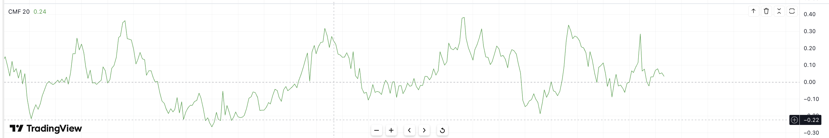 Nykyinen rakenne mitätöityisi vain, jos CMF laskee nollan alapuolelle samalla kun hinta laskee alle 37,5 dollarin. Siihen asti notkahduksia ostetaan voimakkaasti.