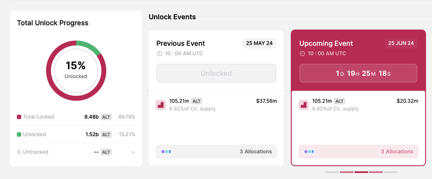 25. kesäkuuta AltLayerin on määrä avata yli 100 miljoonaa ALT-tokenia. Nämä tunnukset on varattu varainhallinnon, yhteisön ja ekosysteemin kehittämiseen.