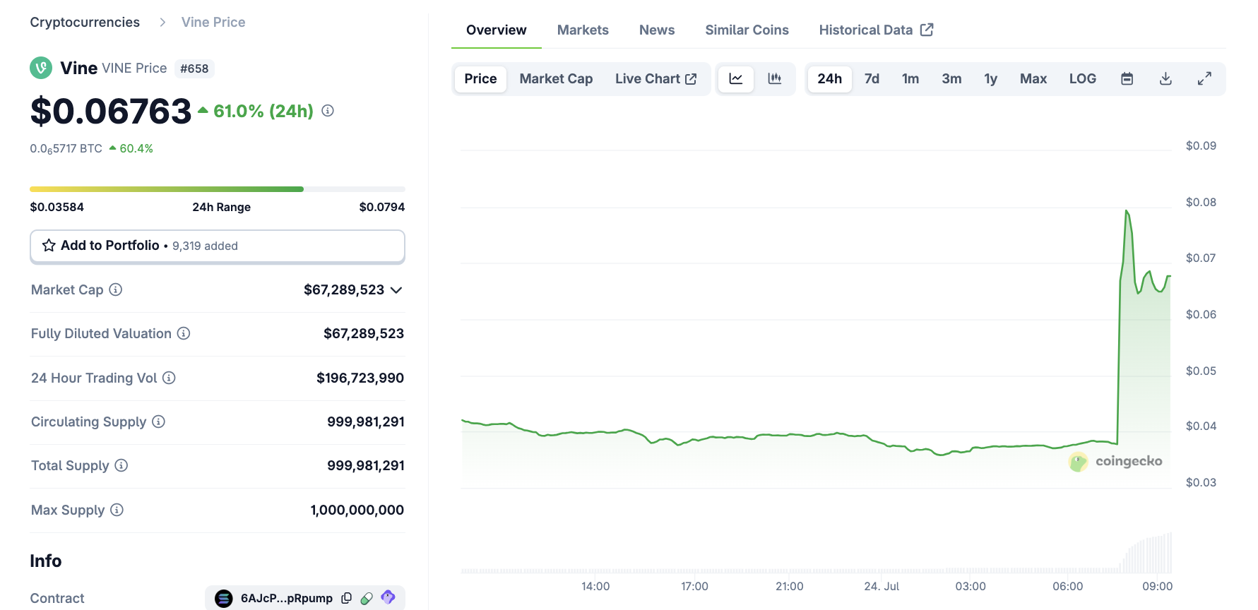 VINE-hinnan kehitys. Lähde: CoinGecko