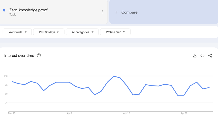 Kiinnostus ajan mittaan Zero Knowledge Proof -aiheeseen. Lähde: Google Trends