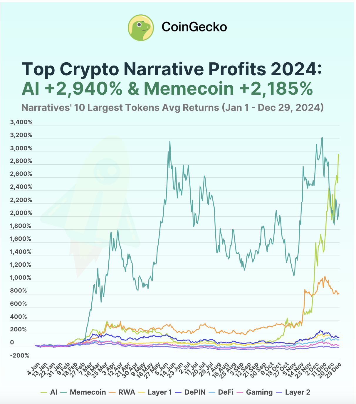Top Crypto Narrative Profits of 2024. Lähde: CoinGecko.