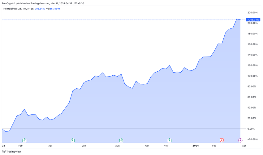 Nu Holdings on ollut Berkshire Hathawayn salkussa erinomainen menestyjä. Vuonna 2021 tehdyn 500 miljoonan dollarin alkuinvestoinnin ja sitä seuranneen 250 miljoonan dollarin lisäsijoituksen jälkeen yhtiön arvo on noussut huimasti, ja osakekurssit ovat nousseet lähes 50 prosenttia pelkästään vuonna 2024. Tämä kehitys on seurausta vaikuttavasta noususta vuonna 2023, jolloin osakkeen arvo nousi lähes 100 prosenttia.