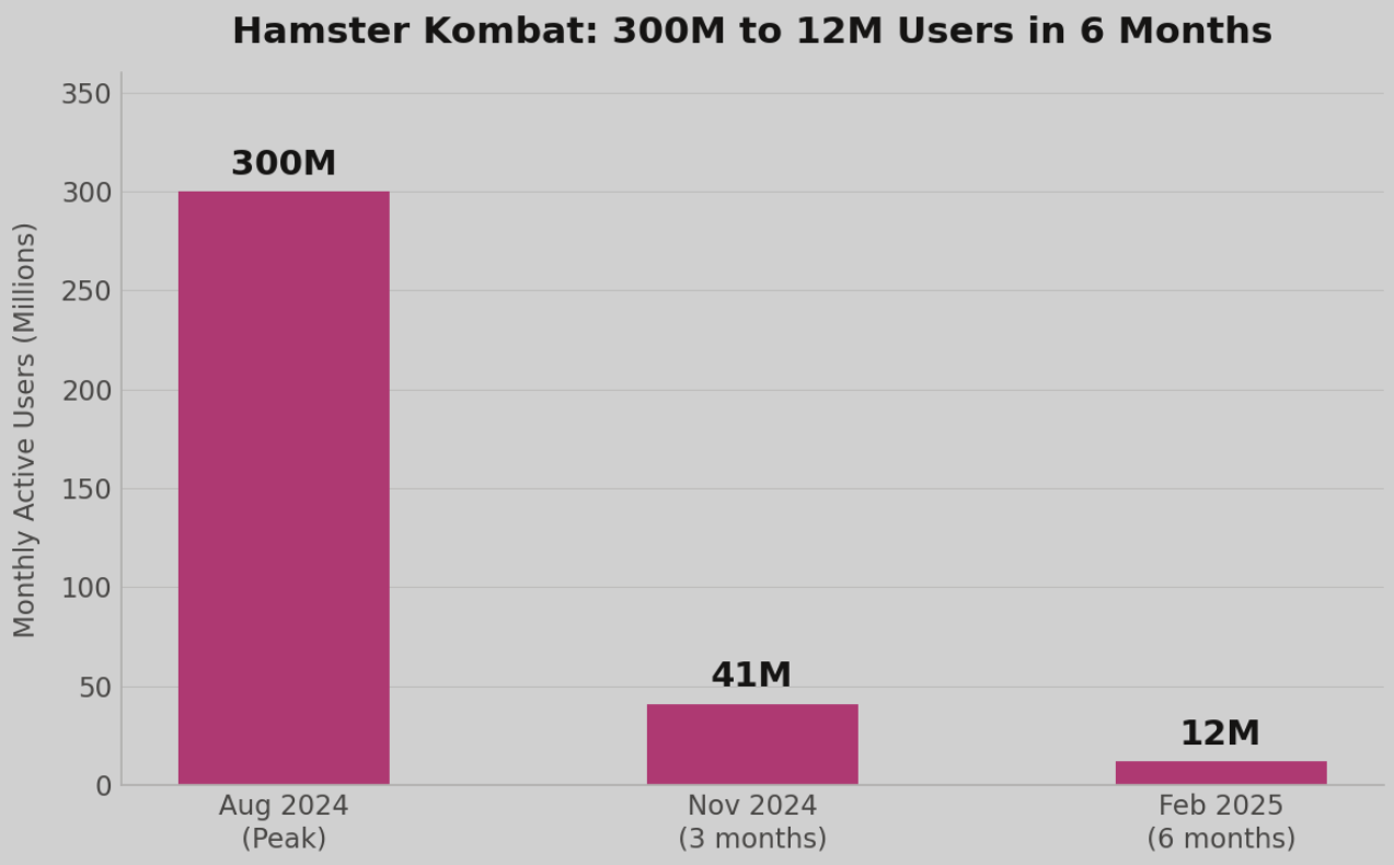 Isku ei rajoittunut vain pelistudioihin. Telegramin tap-to-earn-buumi johti siihen, että Hamster Kombatin käyttäjämäärä laski 300 miljoonasta 12 miljoonaan kuudessa kuukaudessa. Yield Guild Games (YGG) on tippunut 99,6 % huipputasostaan.
