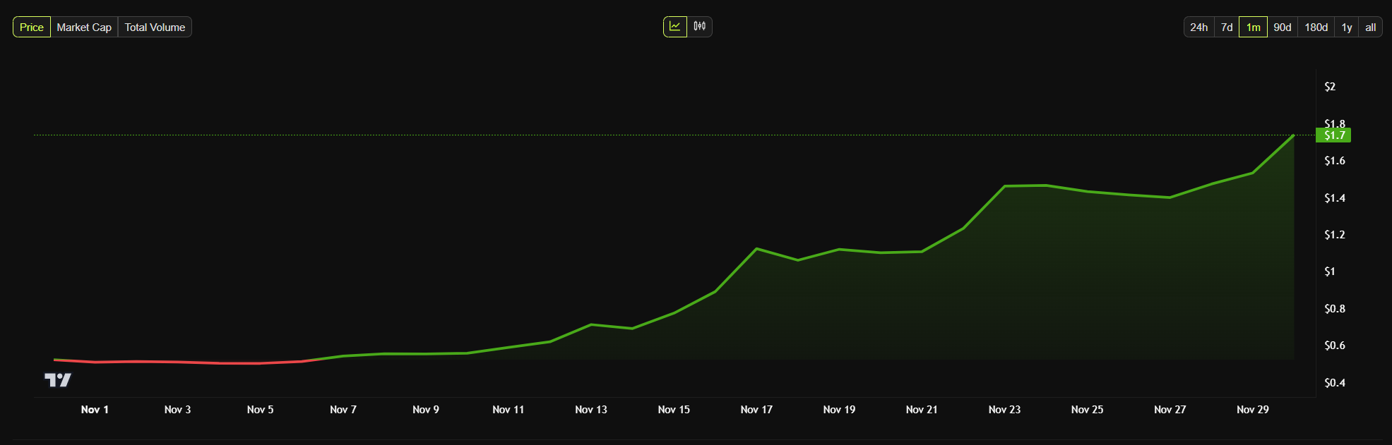 XRP:llä on vahva nousujohteinen momentti, sillä altcoin nousi yli 230 % marraskuussa.