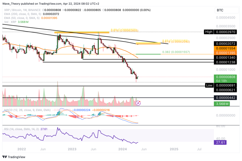 XRP:n hinnan jatkuva lasku Bitcoiniin nähden havaittu