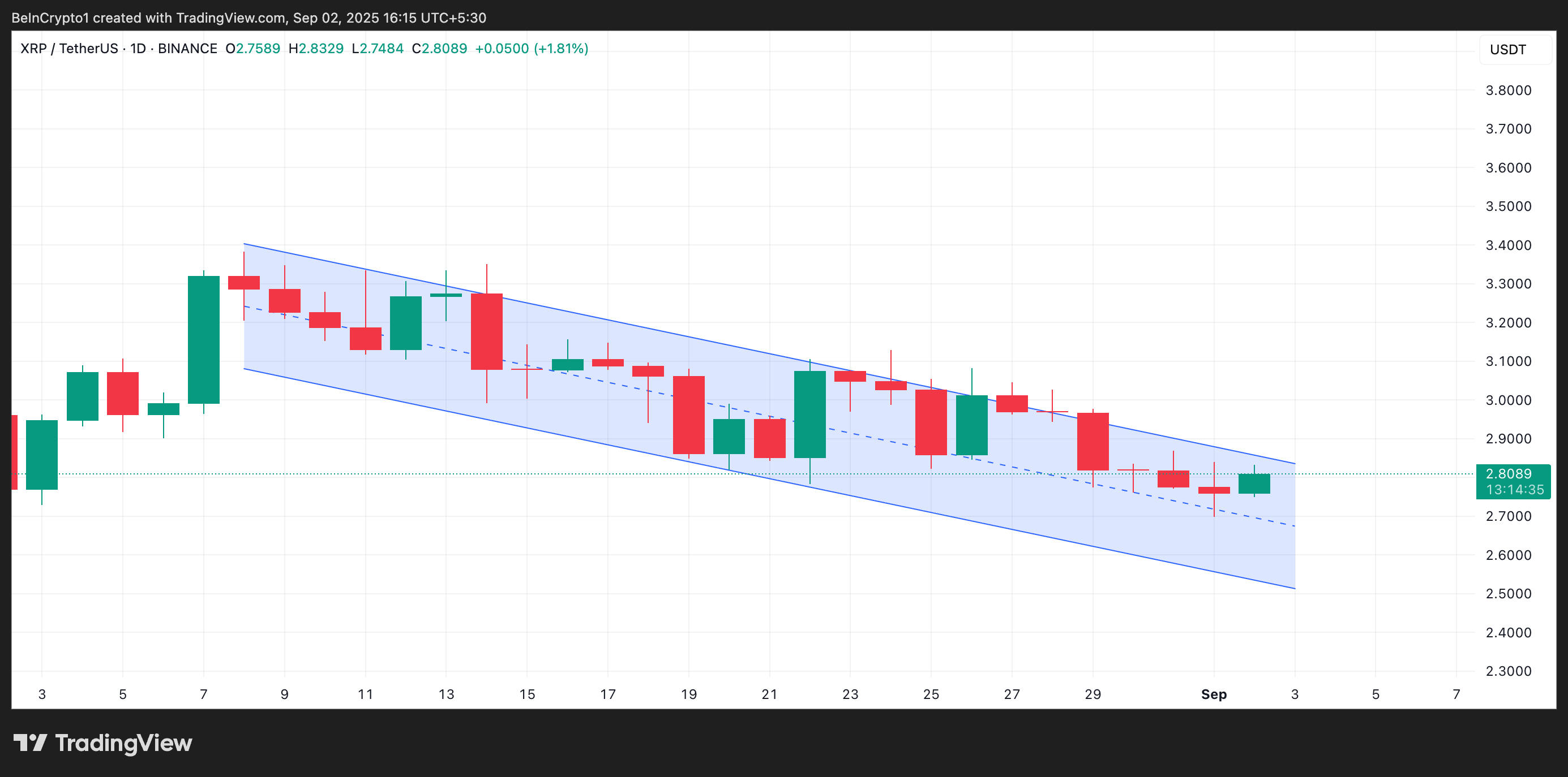Ripplen XRP on ollut jatkuvan myyntipaineen alaisena, liikkuen laskevassa rinnakkaiskanavassa elokuun 2. päivästä lähtien.