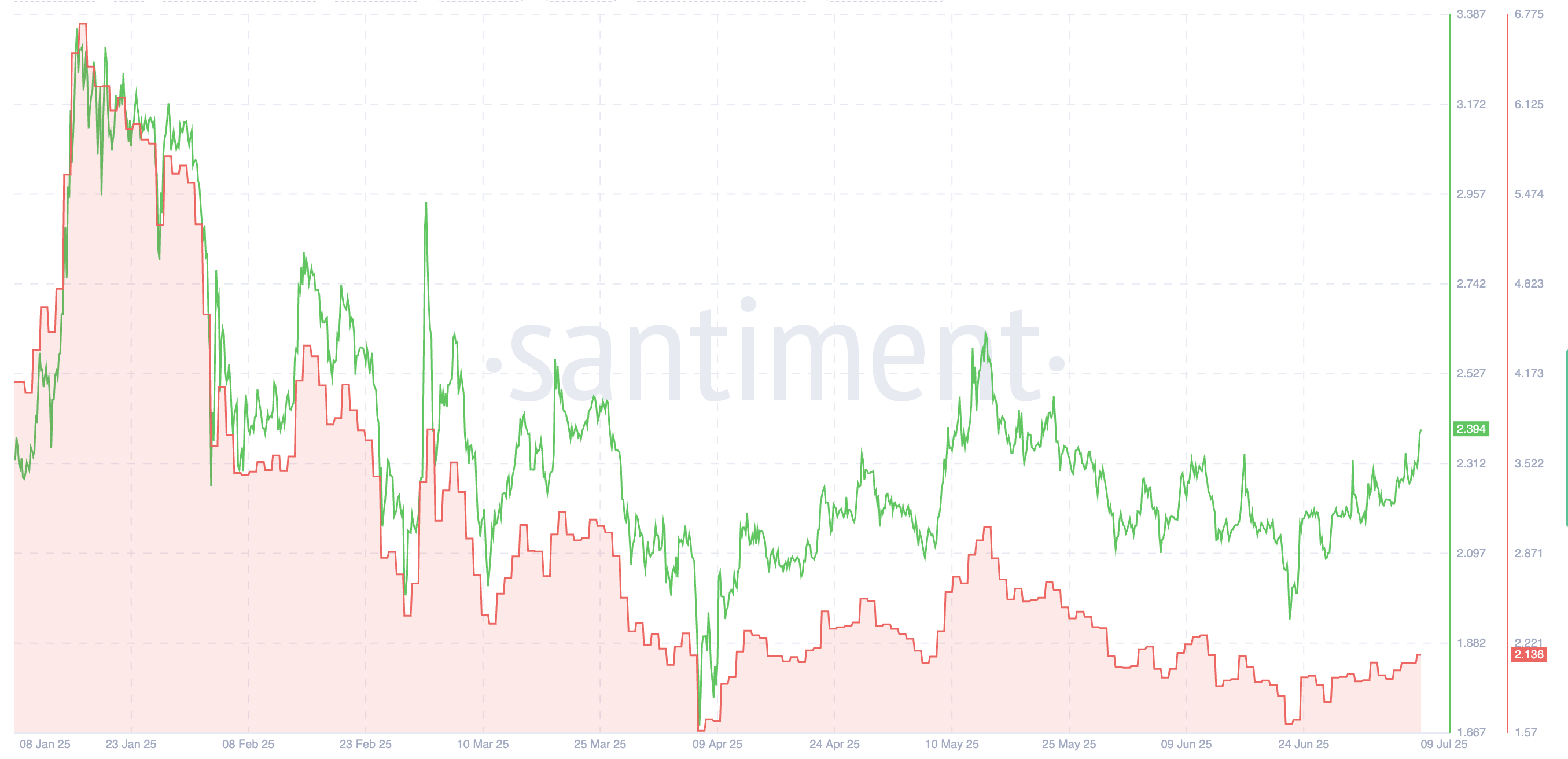Tämä tarkoittaa, että XRP ei ole yliarvostettu, ja nykyinen hintakehitys perustuu todennäköisesti terveeseen kysyntä-tarjonta-dynamiikkaan. Tämä asema tukee jatkossakin noususuuntausta, varsinkin kun piste on vähitellen noussut, mikä heijastaa kasvavaa markkinoiden luottamusta.