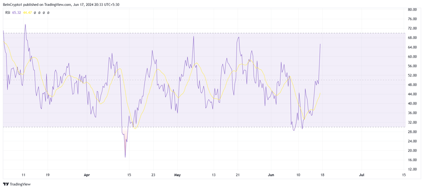 Toiseksi suhteellinen voimaindeksi (RSI) on tällä hetkellä nousualueella, mikä osoittaa positiivista vauhtia. RSI, kriittinen tekninen indikaattori, viittaa siihen, että ostopaine on suurempi kuin myyntipaine, mikä viittaa XRP:n suotuisiin näkymiin.