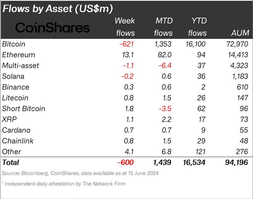 XRP pani merkille suurimman rahavirran institutionaalisilta sijoittajilta, mikä korostaa merkittävää luottamuslausetta altcoinin potentiaaliin. Muut suuret rahakkeet, kuten Litecoin ja Chainlink, havaitsivat sisäänvirtauksia 0,8 miljoonan dollarin arvosta, ja Solana havaitsi 0,2 miljoonan dollarin ulosvirtaukset.