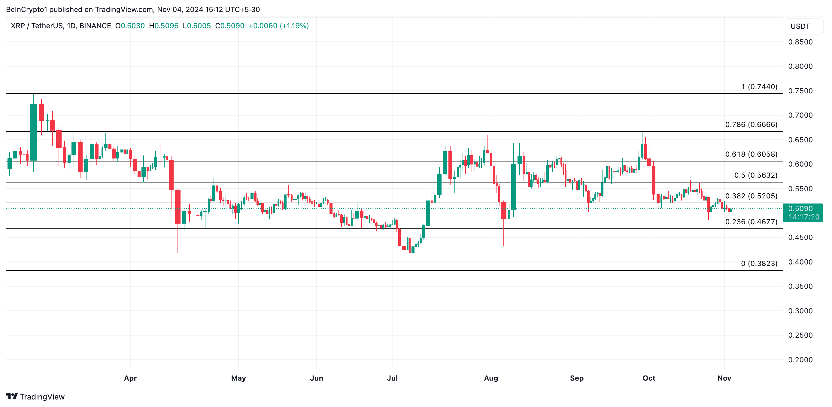 Nämä tapahtumat ovat aiheuttaneet painetta XRP:n hinnan laskuun viime kuukauden aikana. Sen hinta on 0,50 dollaria lehdistöhetkellä, ja se on menettänyt 6% arvostaan 2. lokakuuta lähtien.