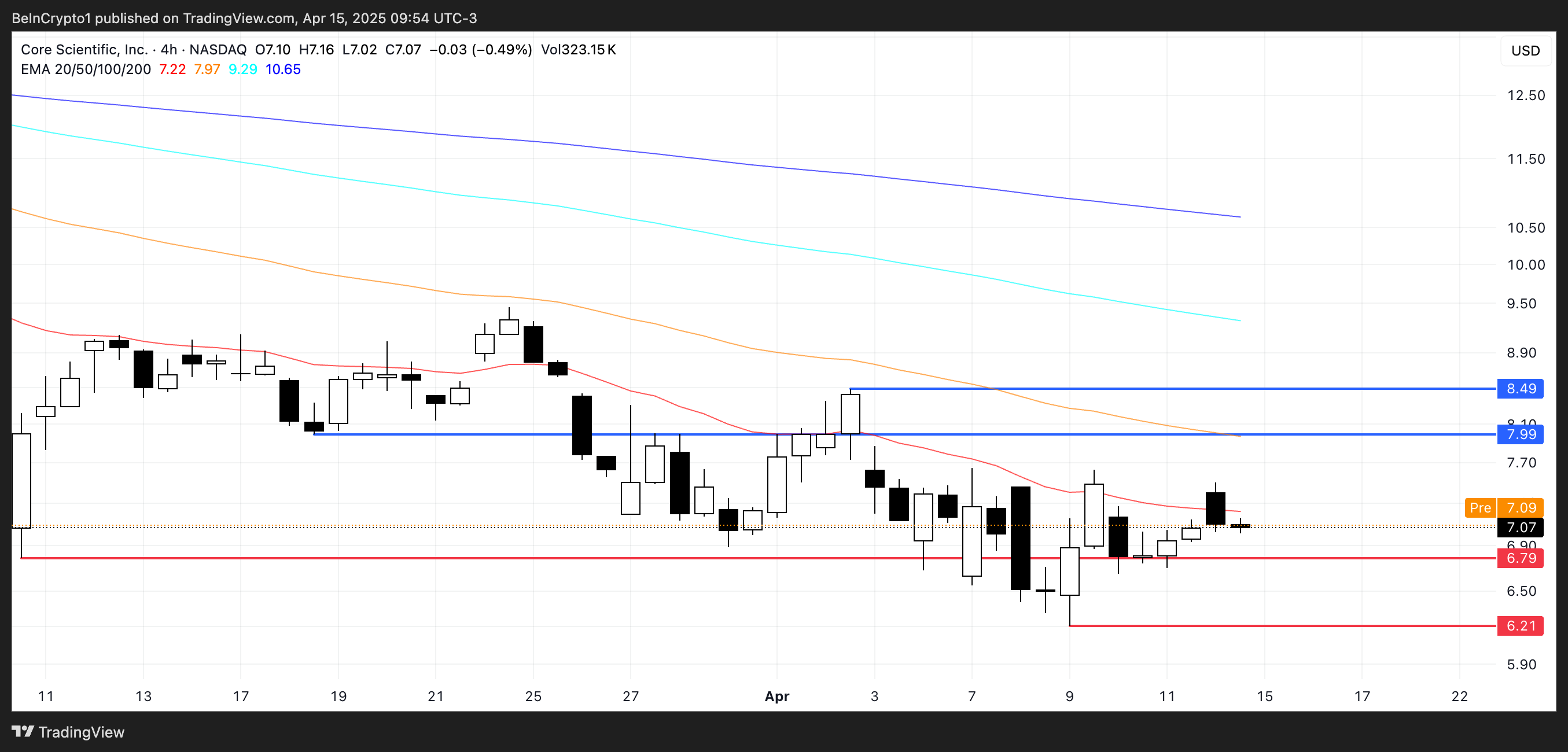 Core Scientific (CORZ) on laskenut -0,84 % ennakkomarkkinakaupassa, jatkaen viimeaikaista heikkoa suorituskykyään. Laajemmasta vahvuudesta huolimatta kryptoon liittyvissä osakkeissa, osake on kamppaillut houkutellakseen ostajia.