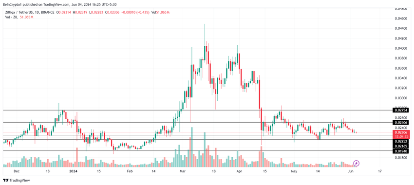 Muutamassa tapauksessa altcoin rikkoi molemmat rajat, nousi kerran 0,027 dollariin ja putosi kerran 0,021 dollariin. Tämä on korkein, mitä ZIL on onnistunut pakenemaan, mikä vaikeuttaa puhkeamista.