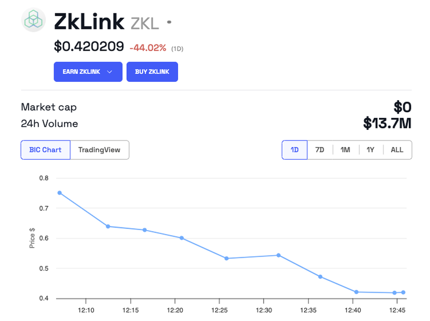 Huolimatta sen laajasta hyödyllisyydestä ja perustavanlaatuisesta roolista zkLink-ekosysteemissä, markkinoiden alkureaktio on ollut heikko, ja listautumisen jälkeen on ollut huomattavaa myyntipainetta.